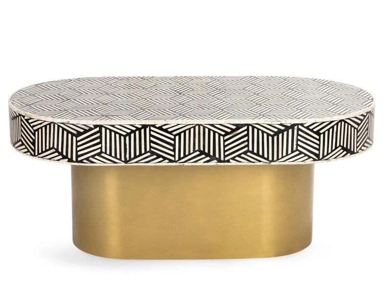 โต๊ะฝังกระดูกทำมือคุณภาพดีที่สุด ลายเรขาคณิต สำหรับห้องหรูหราสไตล์โมเดิร์น เฟอร์นิเจอร์คุณภาพส่งออกจากอินเดีย