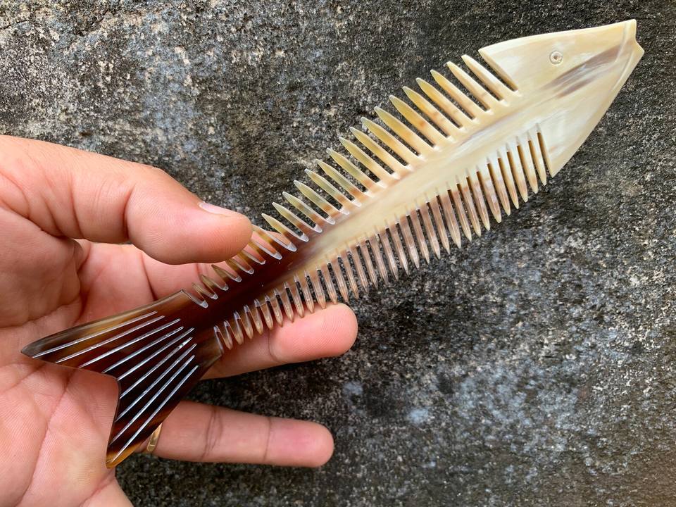 หวีเขาควายรูปสัตว์ทำมือทำจากเขาเขาวัวทำโลโก้ที่ออกแบบได้เองเป็นมิตรต่อสิ่งแวดล้อมอุปกรณ์ทำผมขัดเงาสีขาวงานฝีมือตามธรรมชาติ