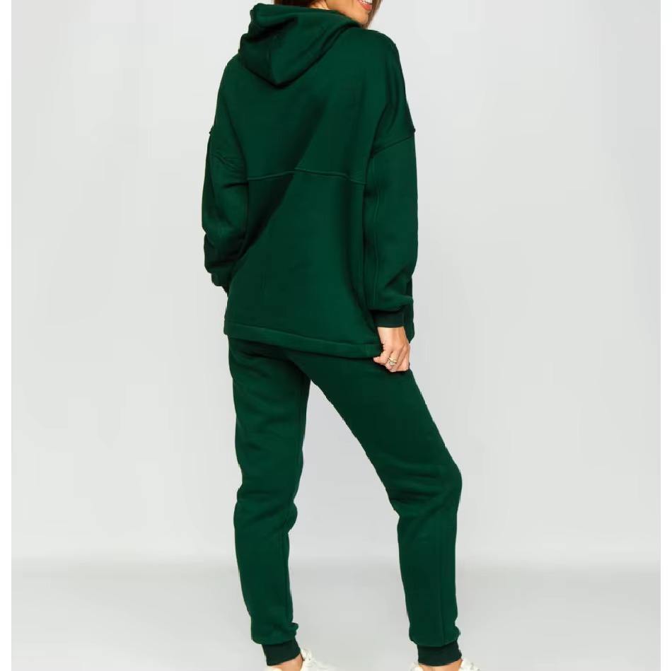 ชุดวอร์มกำมะหยี่ผู้หญิงแบบสั่งทำคุณภาพดีที่สุด ลายโลโก้ สำหรับฤดูหนาว แบบยาวคลุมเข่า ชุดออกกำลังกายแบบสวม ชุดเซ็ต 2 ชิ้น แบบมีซิป