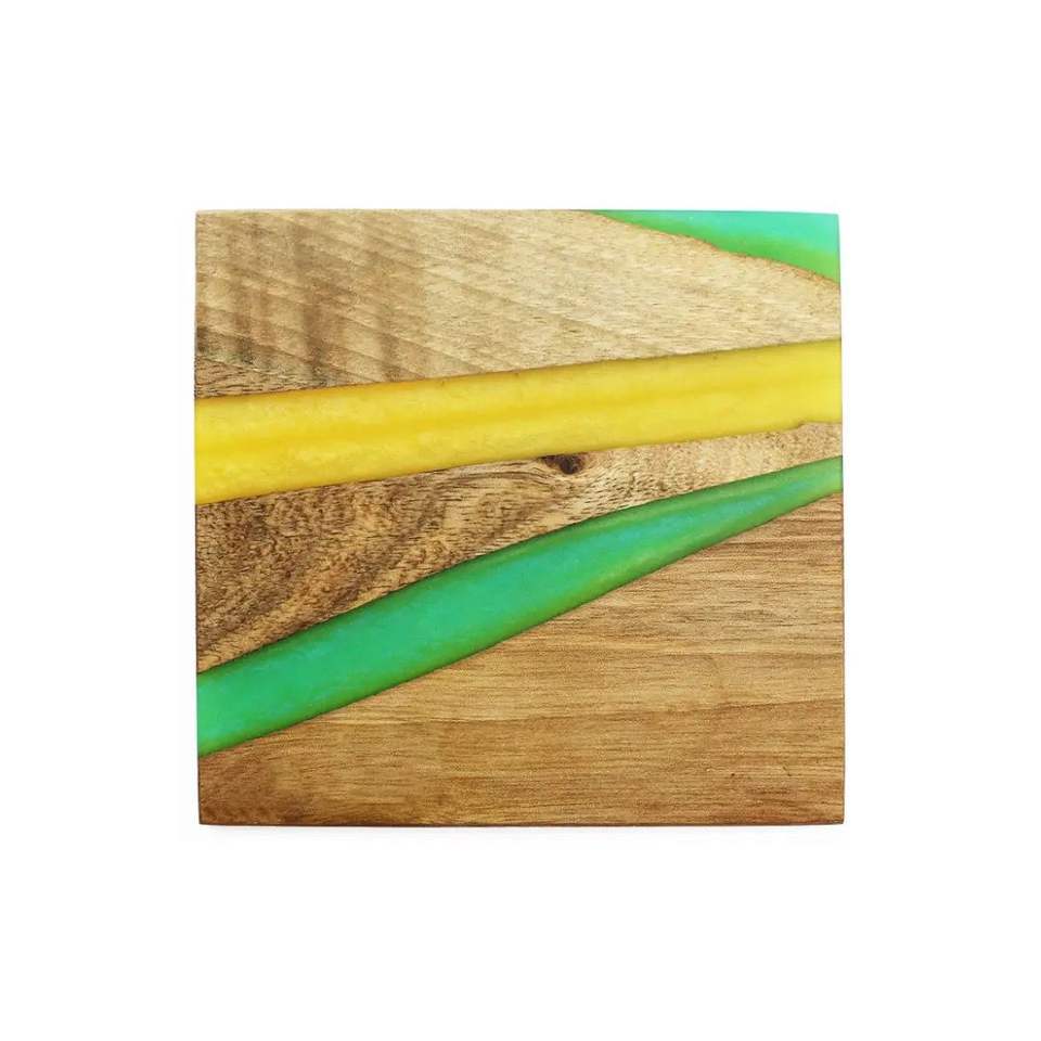 ที่รองแก้วไม้และเรซินที่กำหนดโลโก้ได้เองถาดรองแก้วกาแฟทำจากไม้เรซินสำหรับเครื่องดื่มกาแฟชุดตกแต่งทำด้วยมือ