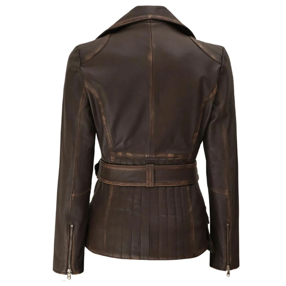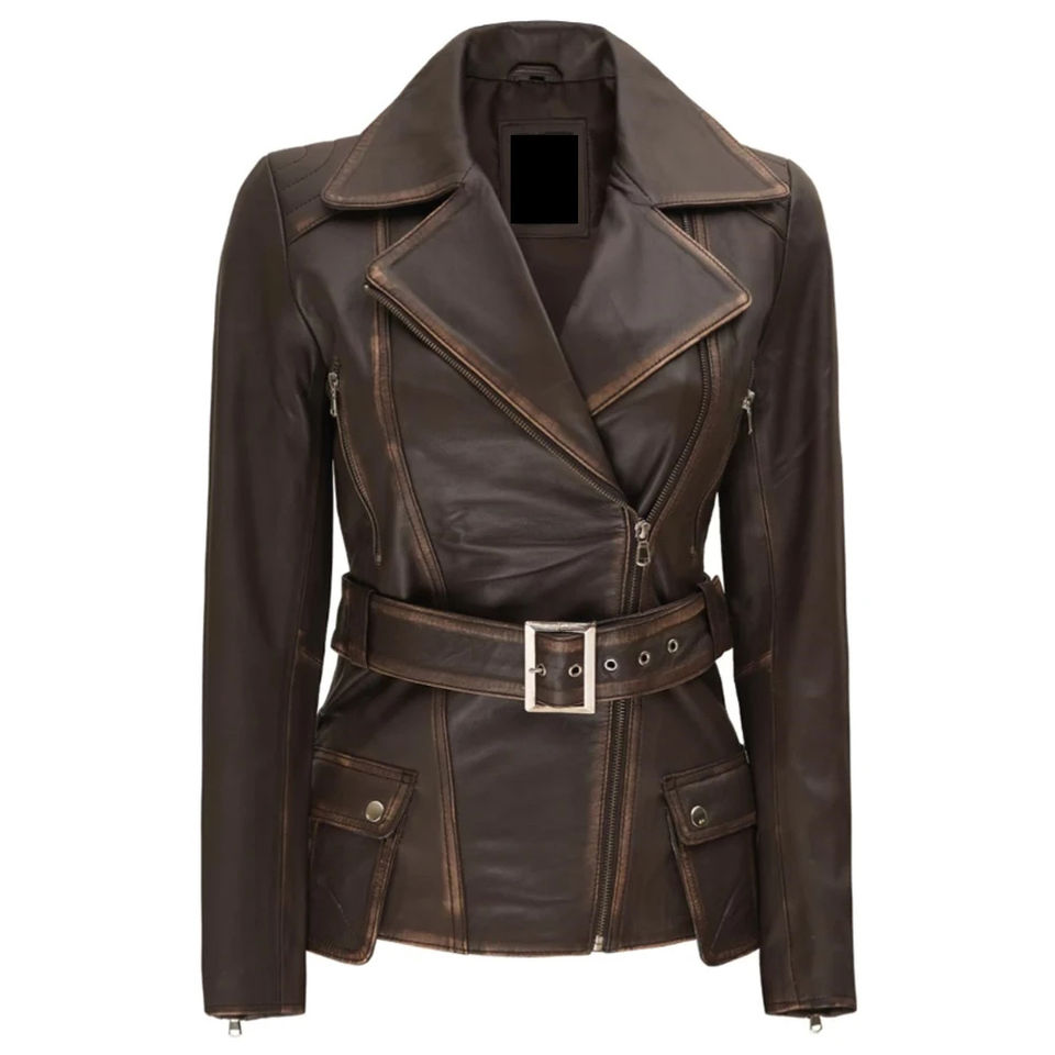 เสื้อแจ็คเก็ตหนังแท้คุณภาพดีที่สุด แขนยาว แบบสั่งทำพิเศษ พร้อมปักลายตามสั่ง สำหรับผู้หญิง ไซส์พลัส