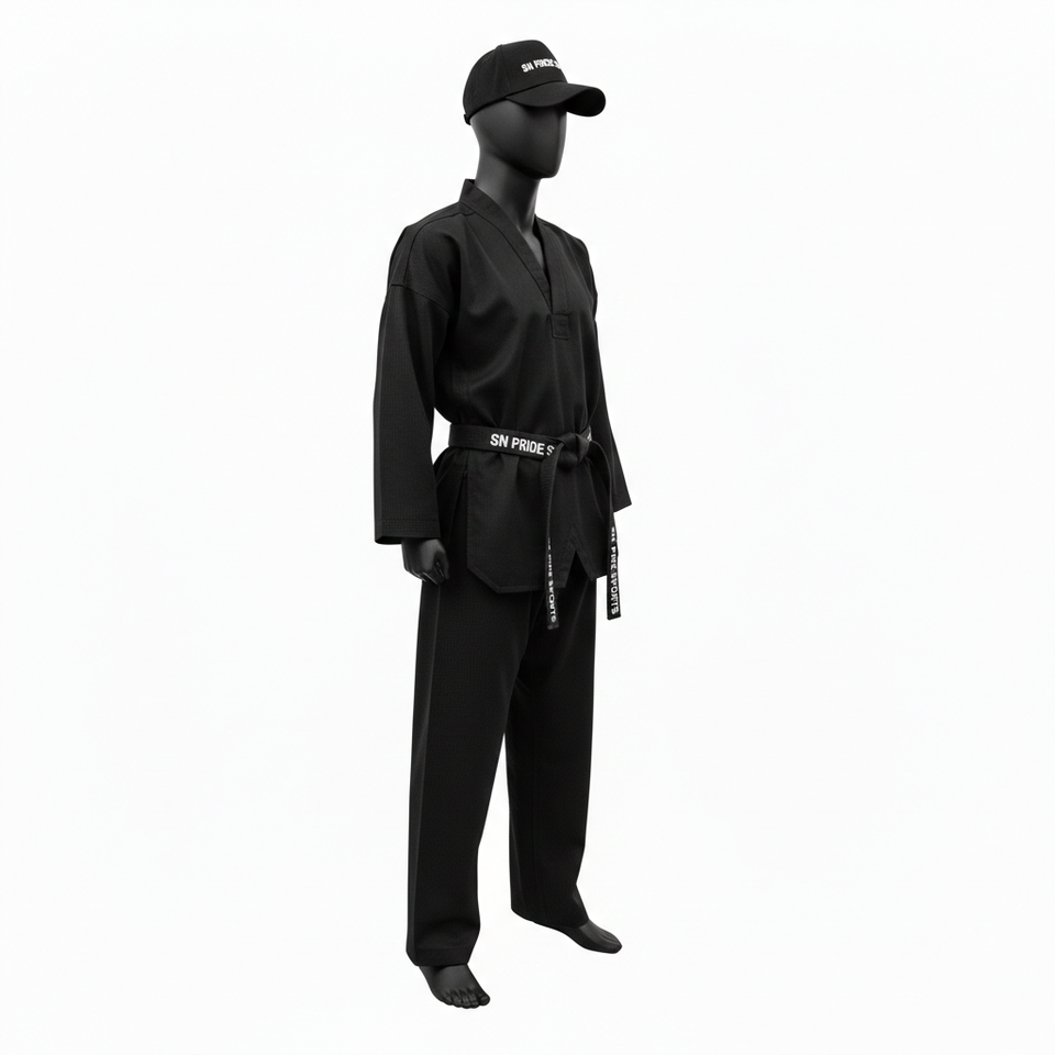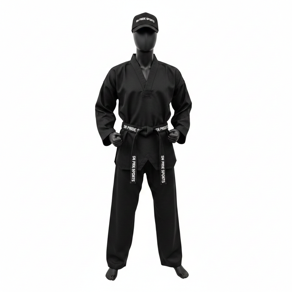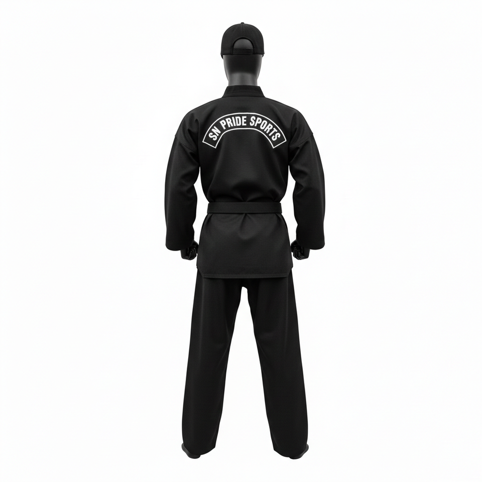 ชุดยูนิฟอร์มศิลปะการต่อสู้คุณภาพดีที่สุด ผลิตตามสั่ง ชุดคาราเต้ ผ้าฝ้ายแท้ สีดำ ผ้าฝ้าย 100% ชุดเทควันโด