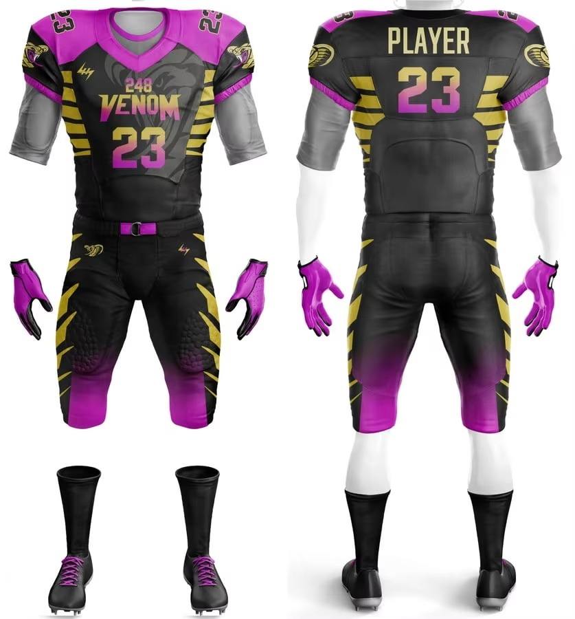 เสื้อฟุตบอลอเมริกันแบบสั้น พิมพ์ลายแบบซับลิเมชั่น คุณภาพดีที่สุด ผลิตตามสั่ง ผ้าโพลีเอสเตอร์ 100% ระบายอากาศได้ดี ชุดยูนิฟอร์มผู้ชาย ขายส่งราคาถูก