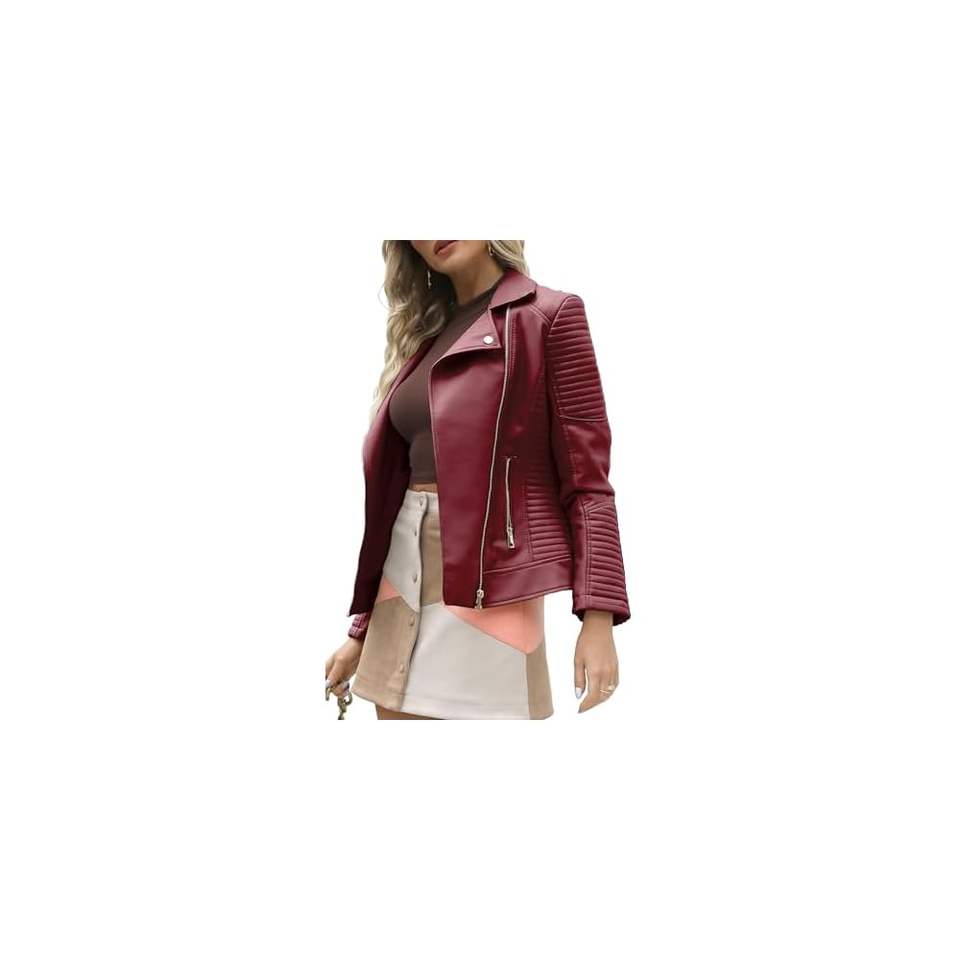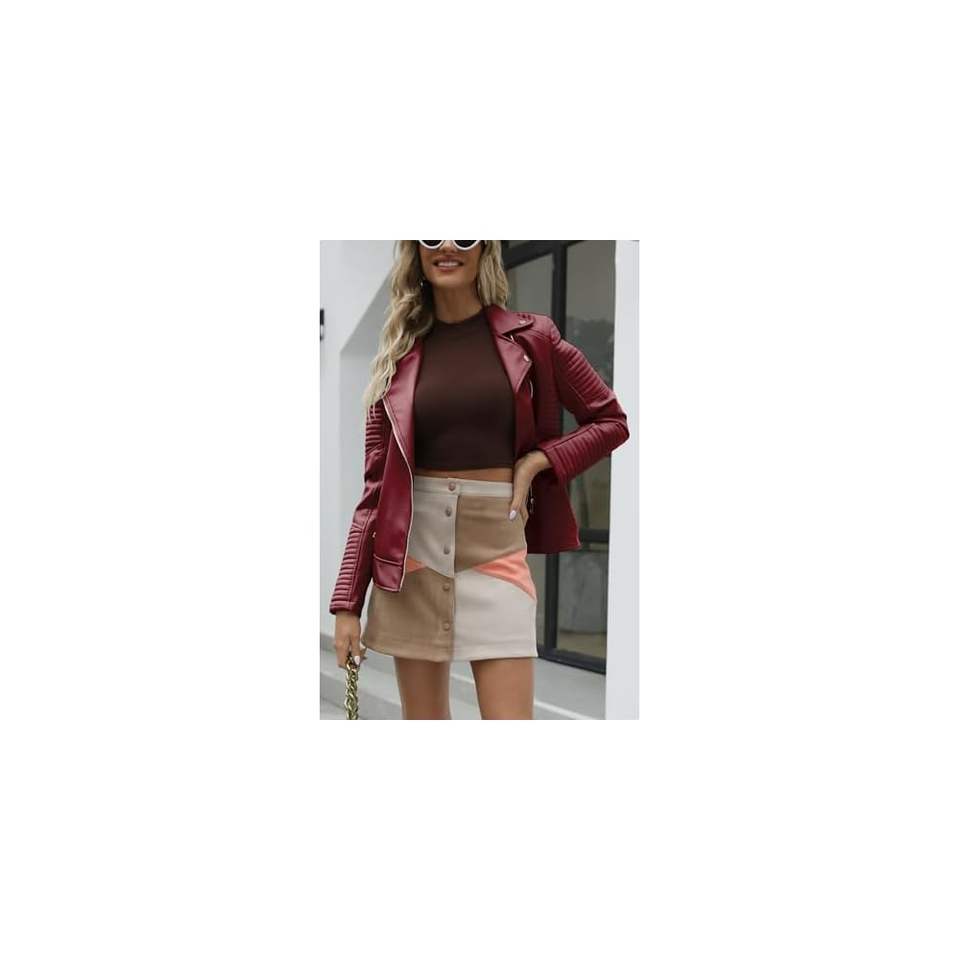 แจ็กเก็ตหนังแท้สำหรับผู้หญิงมีโลโก้ตามต้องการความยาวสั้นมีสไตล์สีสันที่เป็นเอกลักษณ์พร้อมคุณสมบัติระบายอากาศ