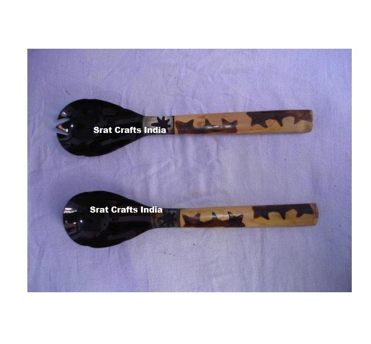 ชุดอุปกรณ์เสิร์ฟสลัดทำจากเขาสัตว์ธรรมชาติ คุณภาพดีที่สุด ตกแต่งโต๊ะอาหาร ผลิตภัณฑ์เครื่องครัว ทำด้วยมือโดยผู้ผลิต