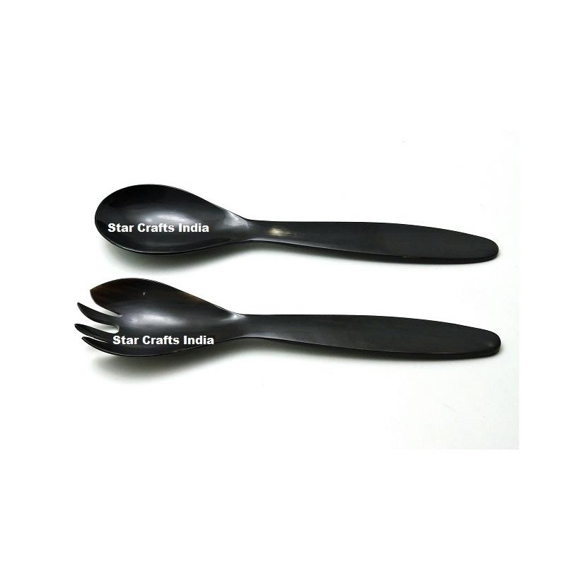 ชุดอุปกรณ์เสิร์ฟสลัดทำจากเขาสัตว์ธรรมชาติ คุณภาพดีที่สุด ตกแต่งโต๊ะอาหาร ผลิตด้วยมือจากอินเดีย