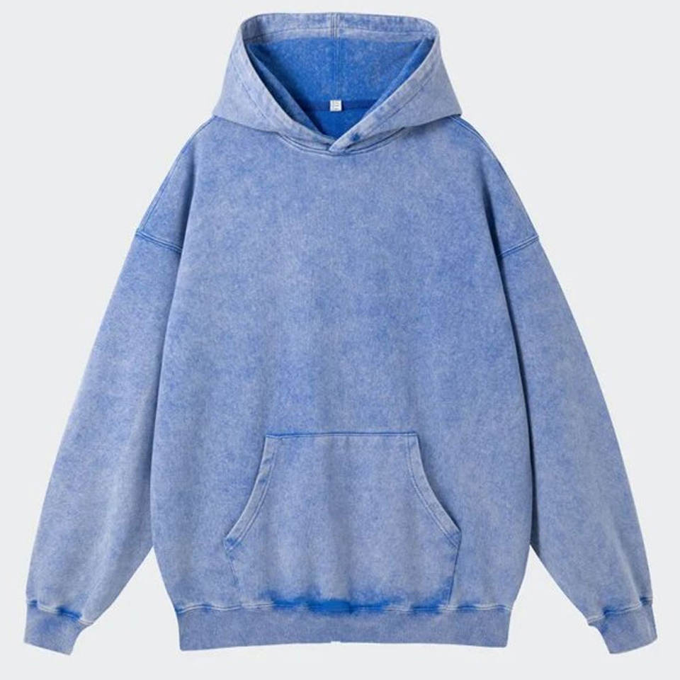 เสื้อฮู้ดผ้าฟลีซผ้าฝ้าย100% มีฮู้ดฟอกสีกรดขนาดใหญ่งานตามสั่งปักสไตล์ใหม่ผลิตในปากีสถาน