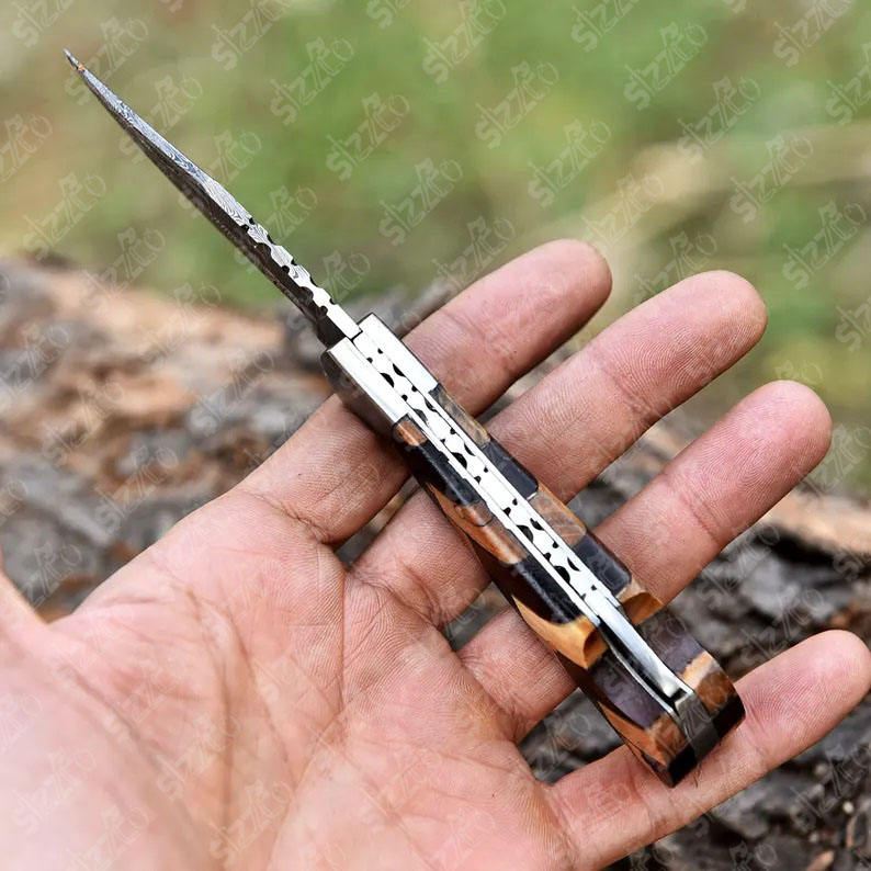 ชื่อผลิตภัณฑ์:มีดพับเหล็กดามัสกัสมือสั่งทำสวยงาม