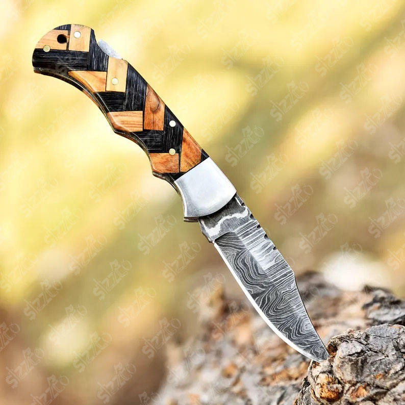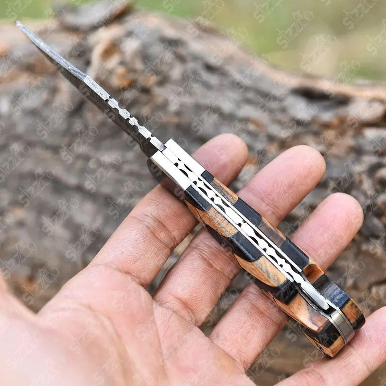 ชื่อผลิตภัณฑ์:มีดพับเหล็กดามัสกัสมือสั่งทำสวยงาม