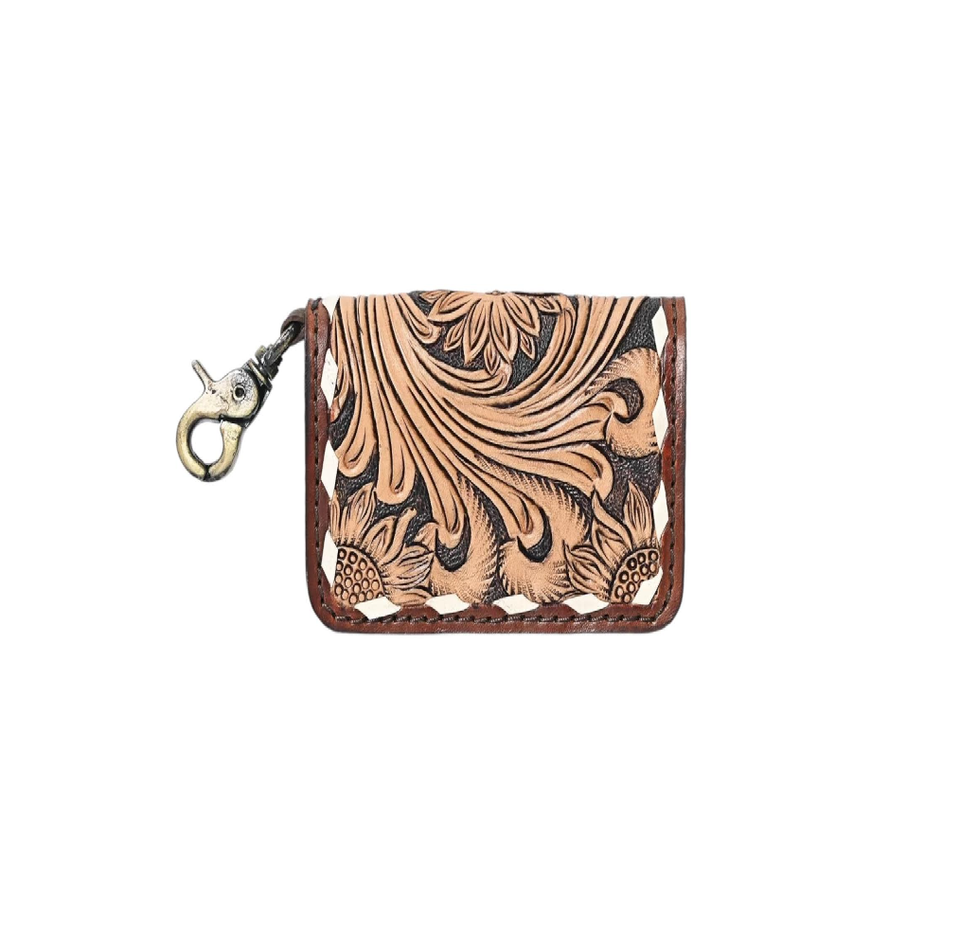 กระเป๋าสตางค์แฟชั่นสำหรับผู้หญิงหนังแท้ประดับมือพร้อมซิปแบบวินเทจฤดูใบไม้ผลิแบบพกพาสำหรับฤดูร้อน