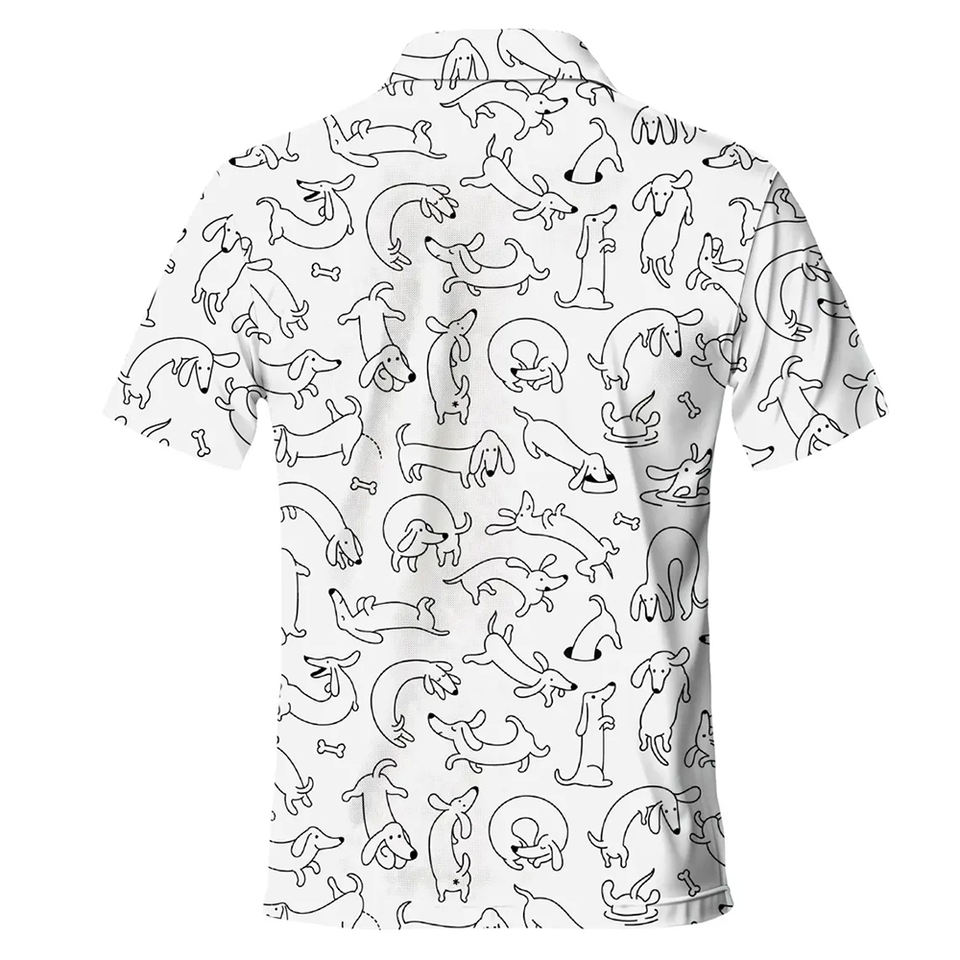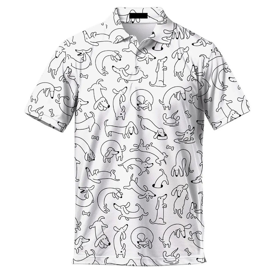 เสื้อกอล์ฟลายพิมพ์สุนัขคุณภาพดีที่สุดสำหรับผู้ชาย แขนสั้น ผ้าถัก ระบายอากาศได้ดี สวมใส่สบาย แห้งเร็ว