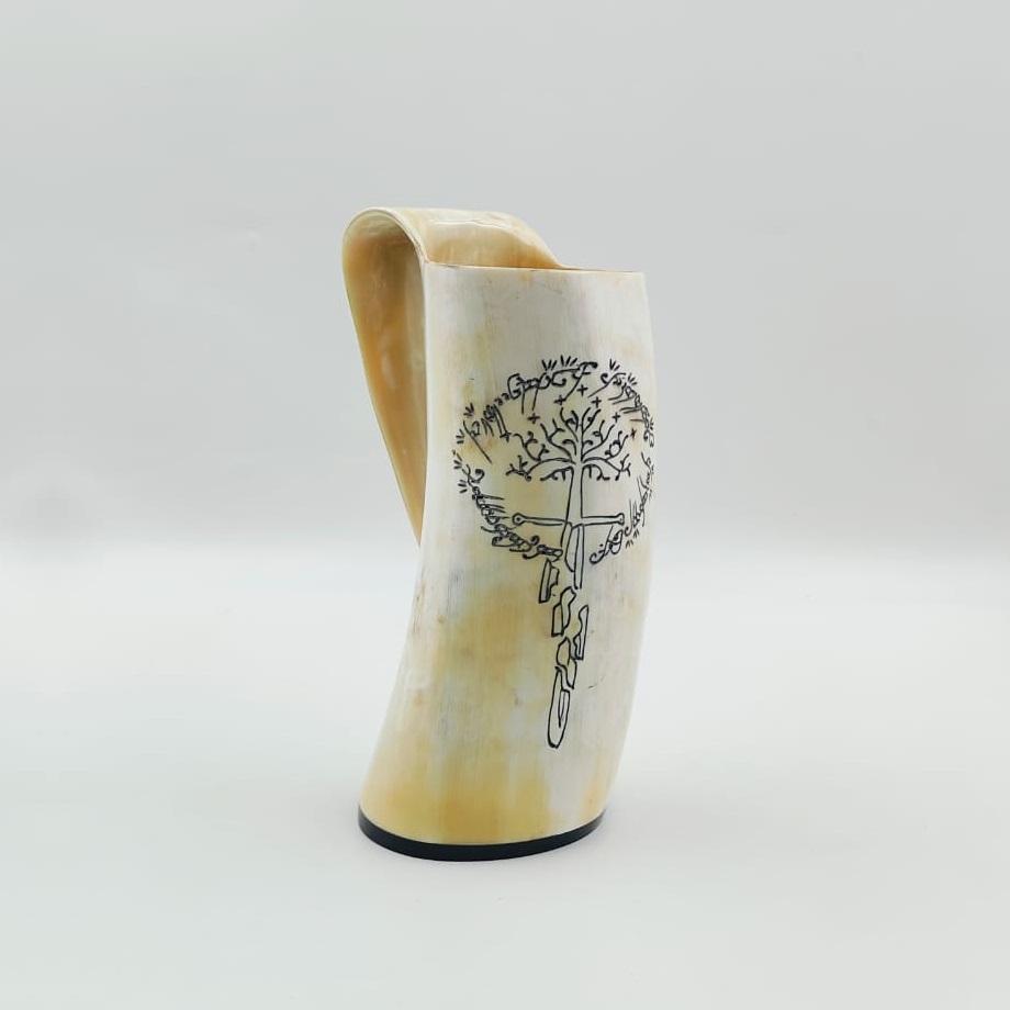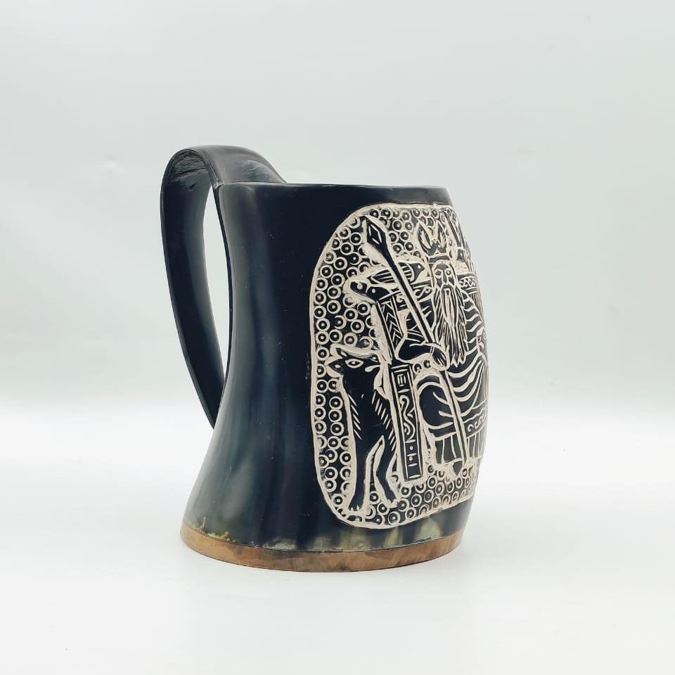 แก้วมักรูปเขาควายธรรมชาติแบบทนทานสลักรูปเขาควายแกะสลักด้วยมือ