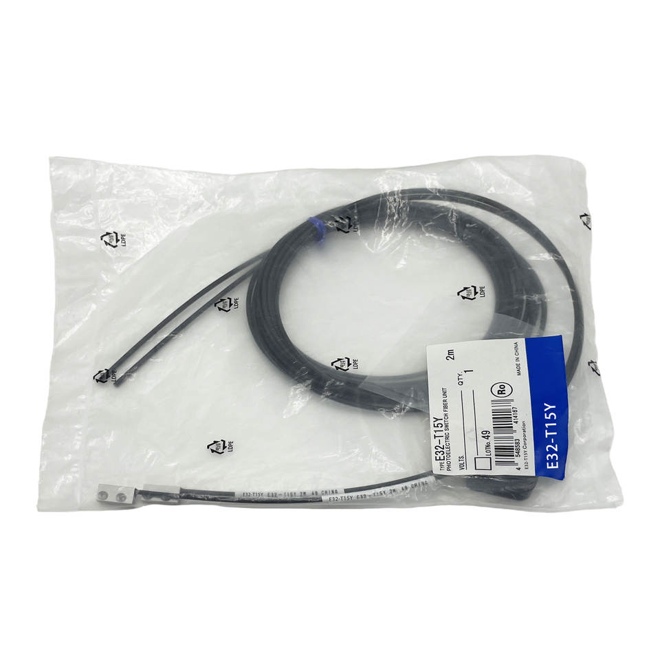 คุณภาพดีที่สุด E32-T15Y หัวเซนเซอร์ไฟเบอร์ออปติกแบบลำแสงผ่าน มองด้านข้าง สายเคเบิลยาว 2 เมตร IP67 ระบบอัตโนมัติอุตสาหกรรม 12-24VDC