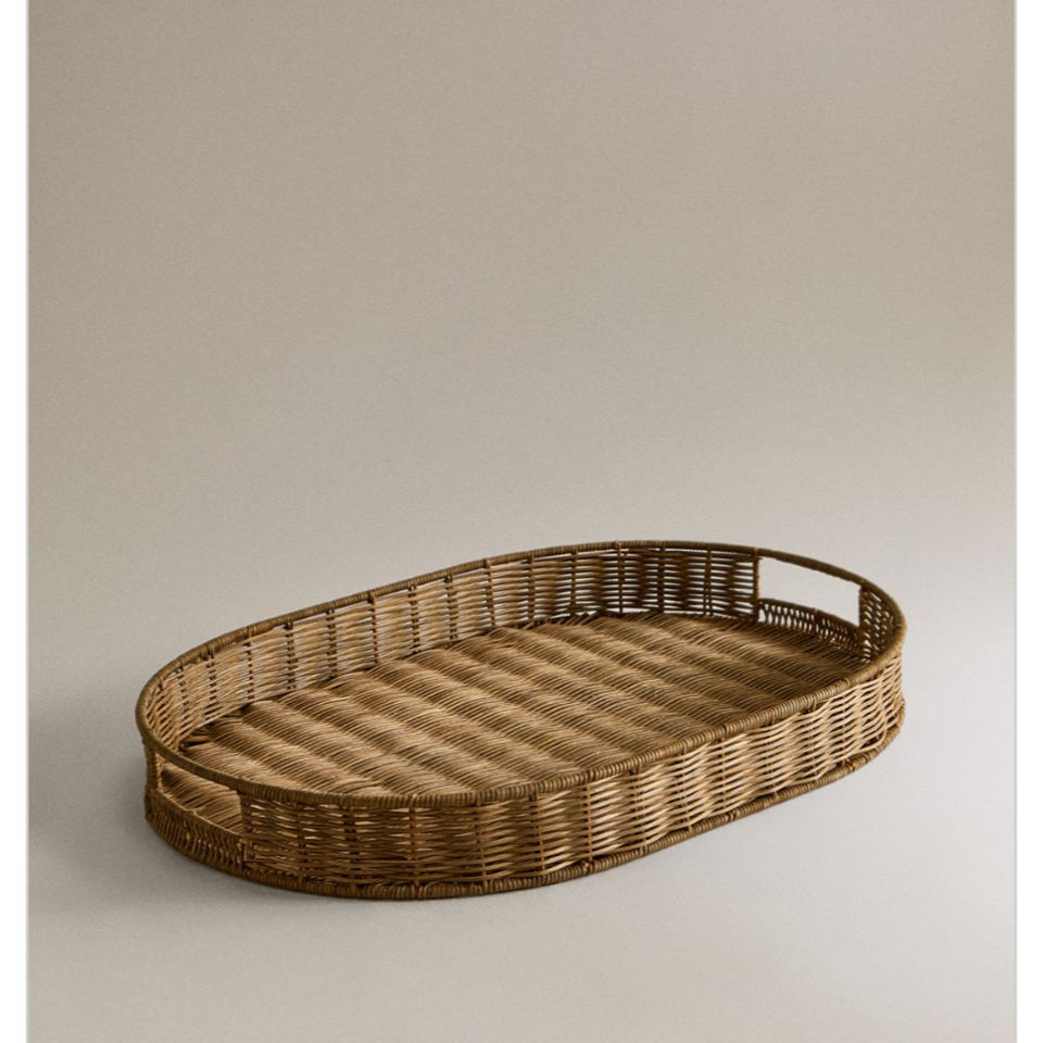 Best Quality Eco-Friendly Floral Rattan Oval Serving Tray Handles Elegant Catering Fruit Bread Tray Organizer for Kitchen Table