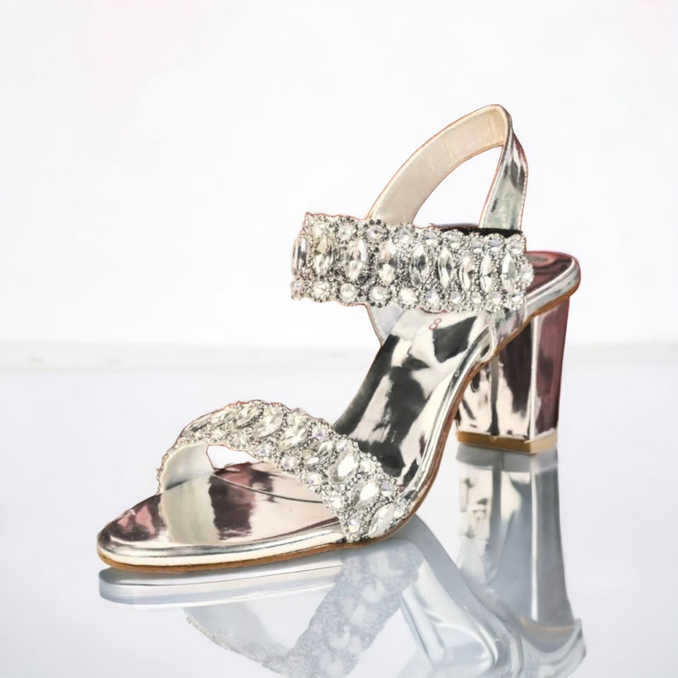 รองเท้าแตะเจ้าสาวแฟนซีส้นตึกพร้อมตาข่ายประดับพลอยเทียมมาเทียล