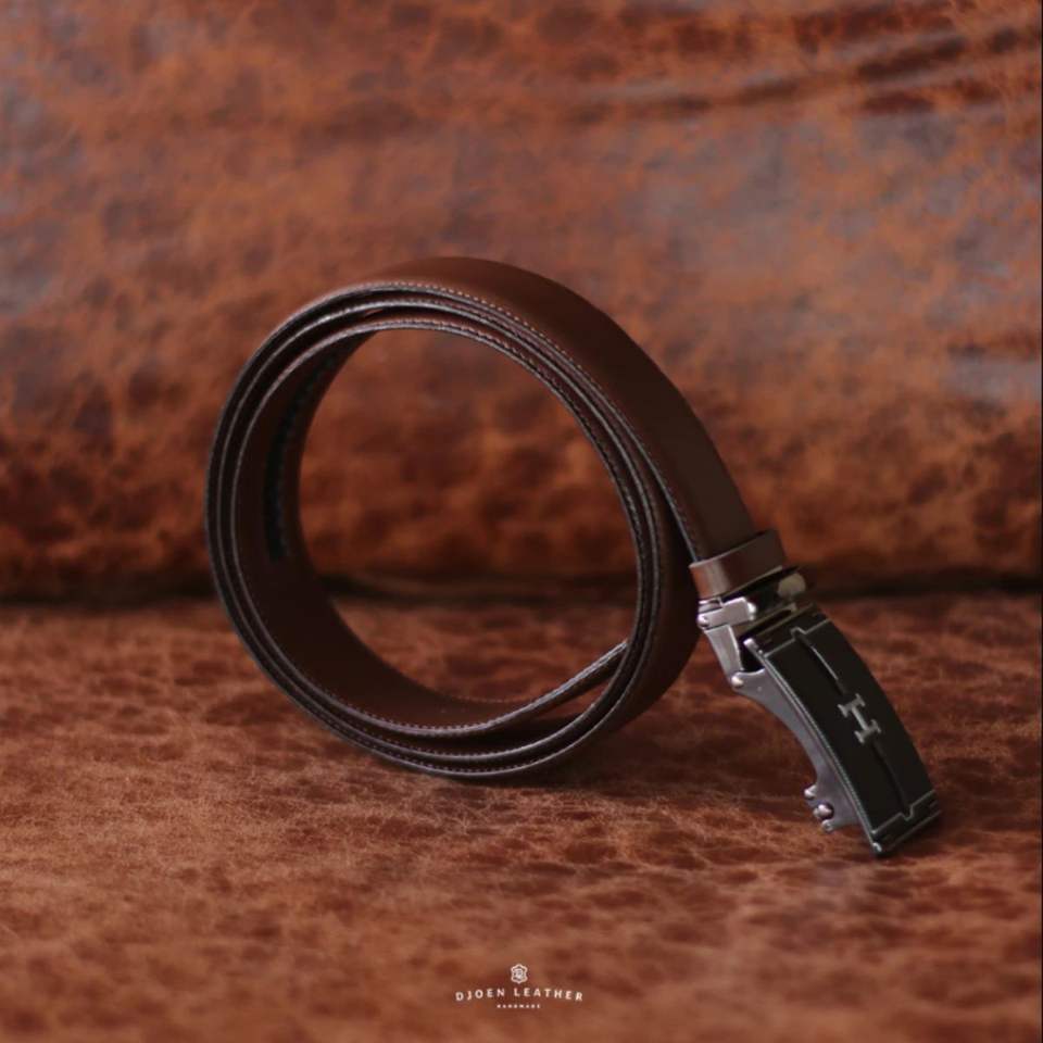 Shinturons เข็มขัดหนังวัวคุณภาพสูงของผู้ชาย B55อัตโนมัติสำหรับหัวเข็มขัดสีน้ำตาลดำหรูหราหนังแท้ทางการทองแดง