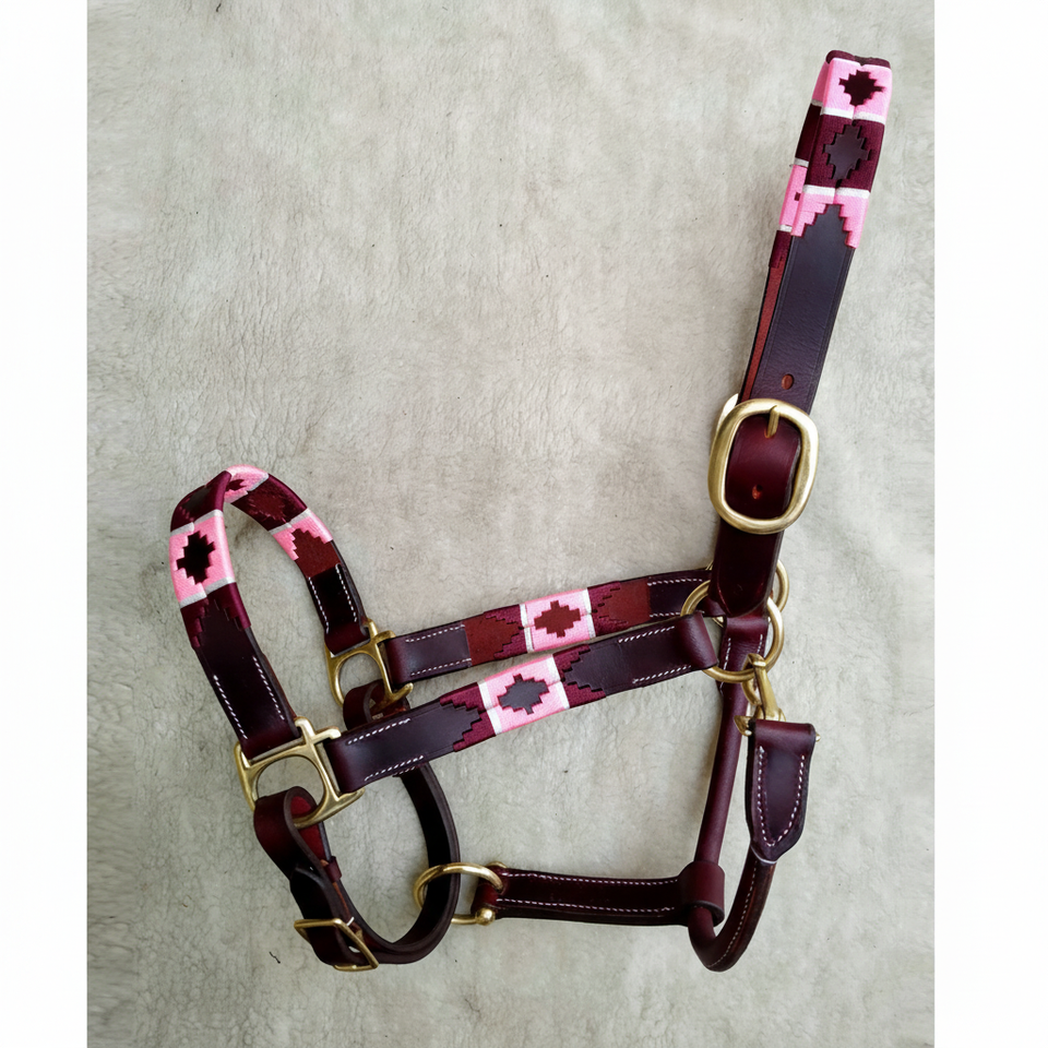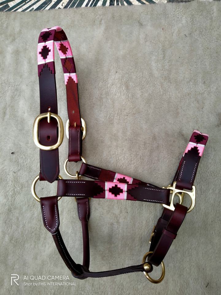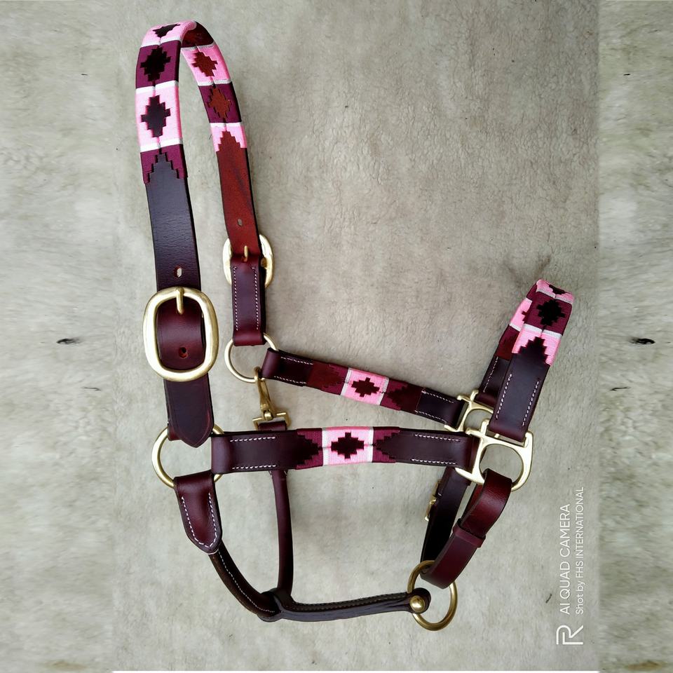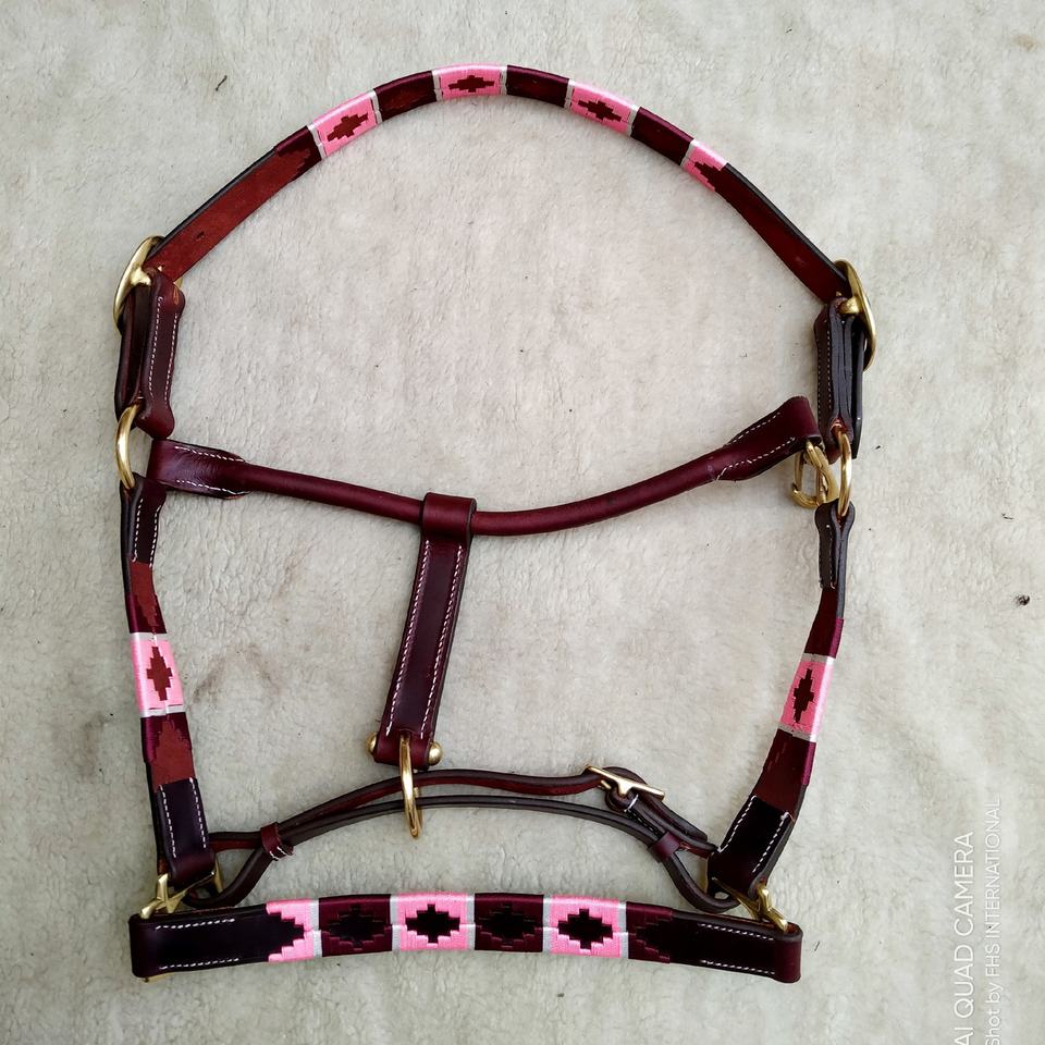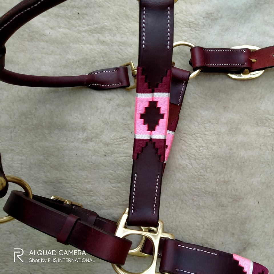 บังเหียนม้าหนังแท้ FHS PH010 คุณภาพดีที่สุด - ดีไซน์เฉพาะตัว - หนังสีน้ำตาลเกาลัด เย็บด้วยด้ายสีชมพูเบอร์กันดี