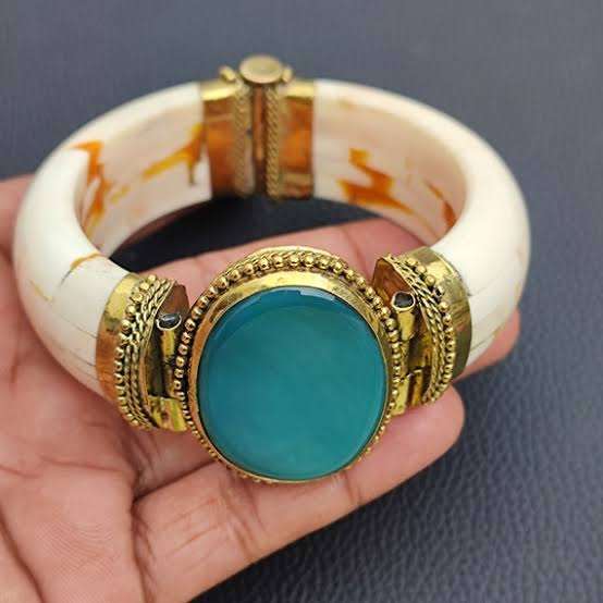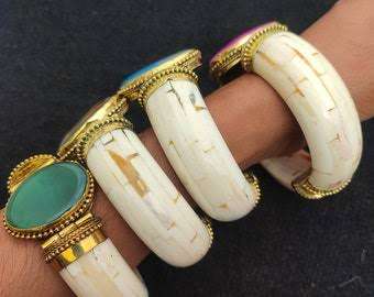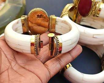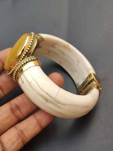 เครื่องประดับแฟชั่นกำไลข้อมือฝังกระดูกพร้อมกำไลทองเหลืองกำไลข้อมืออาเกตสีขาวสไตล์วินเทจลายดีไซน์ใหม่