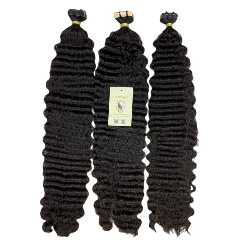 Fast Shipping From Factory Best Quality Raw Burmese Curly Double Drawn Black Tape Extensions Unprocessed Human Hair Wave Style
