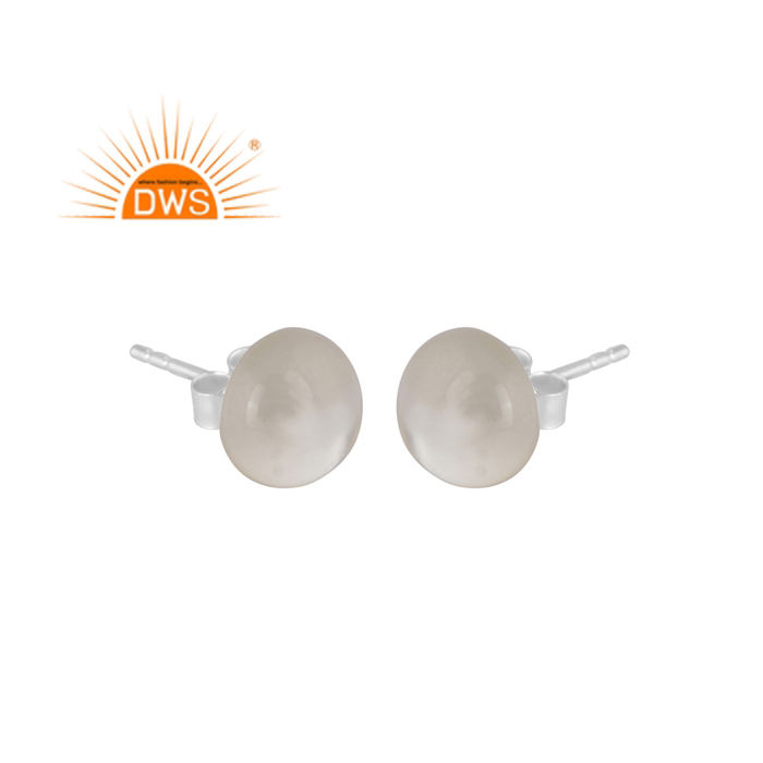 ต่างหูเม็ดเดี่ยวสีเงินสเตอร์ลิงประดับมุกแบบประณีตผลิตตามสั่ง
