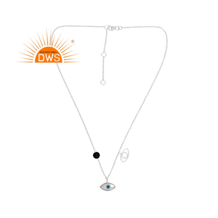 สร้อยคอจี้อัญมณีสีเงินสเตอร์ลิงธรรมชาติสีดำและแม่ของไข่มุกผู้ผลิตเครื่องประดับตามสั่ง