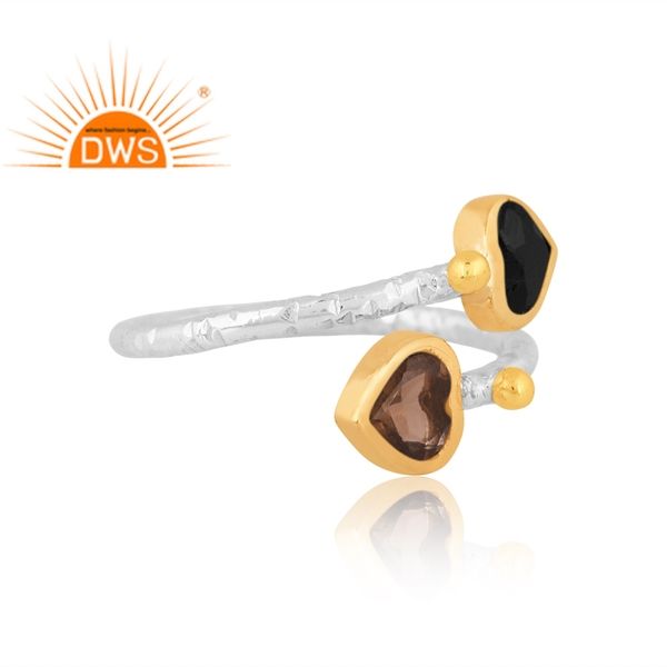 แหวนควอตซ์สโมควอตซ์ธรรมชาติคุณภาพดีที่สุดปรับได้แหวนอัญมณีโอนิกซ์สีดำ