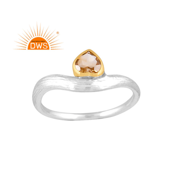 แหวนคลื่นพลอยซิทรินธรรมชาติทำจากเงินแท้ปรับแต่งได้