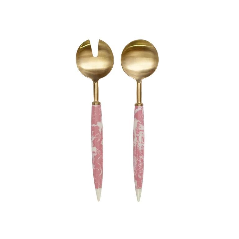 ชุดสลัดแบบแบนชุดสลัด2ชิ้นสำหรับบ้านและโรงแรมชุดเสิร์ฟสลัดเครื่องใช้บนโต๊ะอาหารทำจากทองเหลืองเคลือบเงาสำหรับห้องครัว