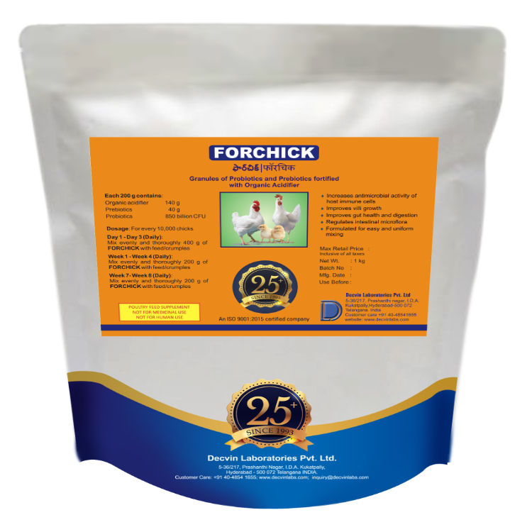 Forchick ผงโปรไบโอติกพรีไบโอติกสารให้กรดอินทรีย์สำหรับไก่เนื้อ