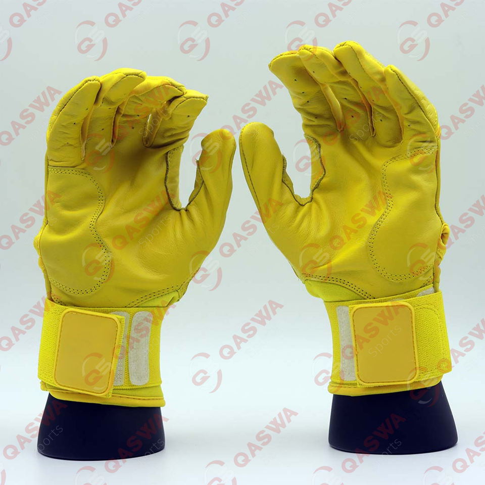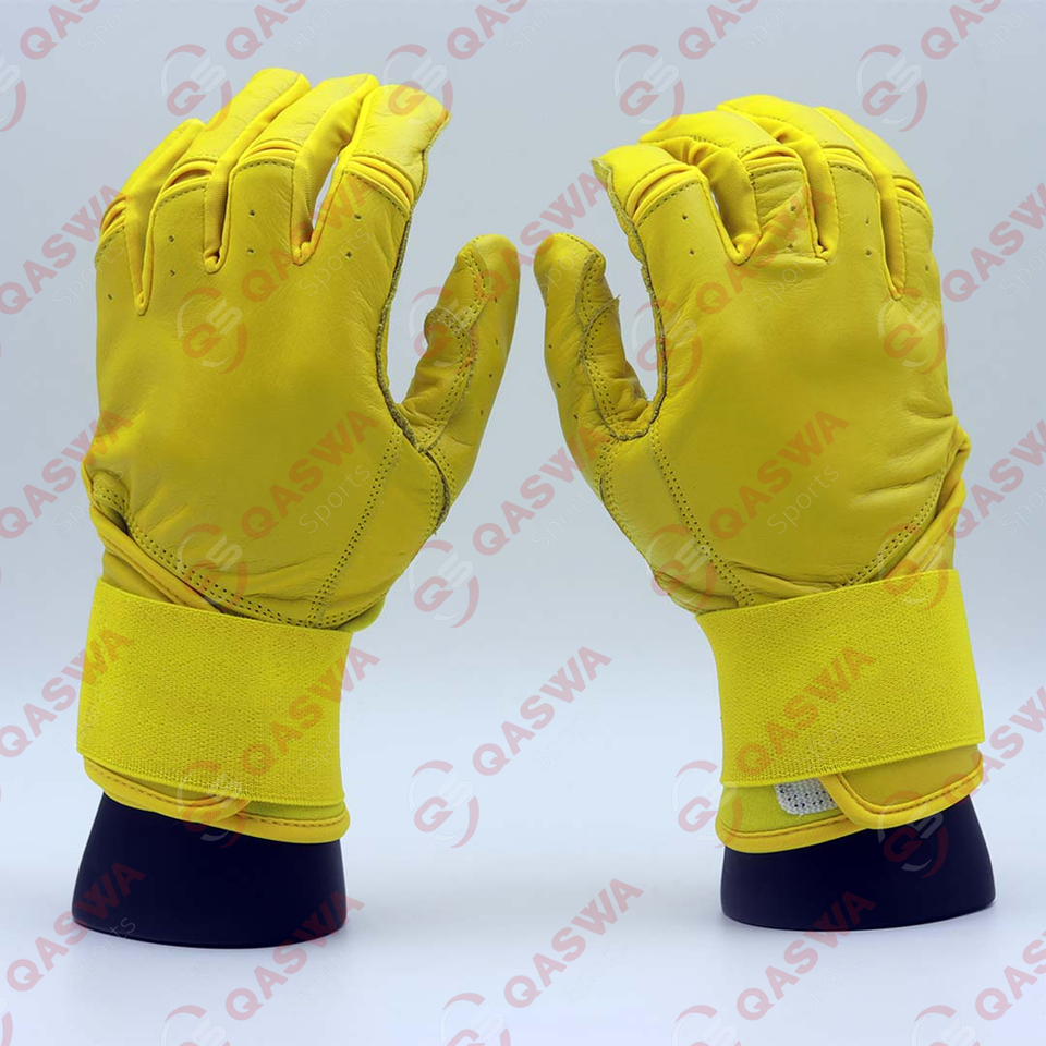ถุงมือเบสบอลหนังวัวสำหรับเล่นเบสบอลทำจากหนังวัวแบบยาวสีเหลืองเต็มรูปแบบ