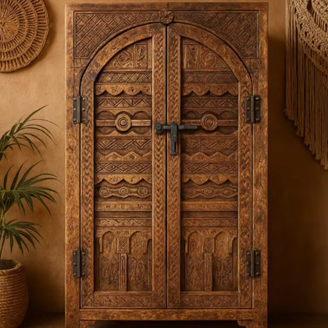 เฟอร์นิเจอร์คุณภาพดี ตู้ไม้จริงสำหรับห้องนั่งเล่น ตู้เสื้อผ้าสไตล์หวาย พร้อมกล่องเก็บของและลิ้นชักเก็บของ ของตกแต่งบ้าน