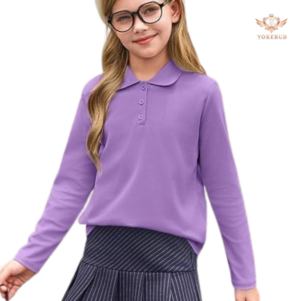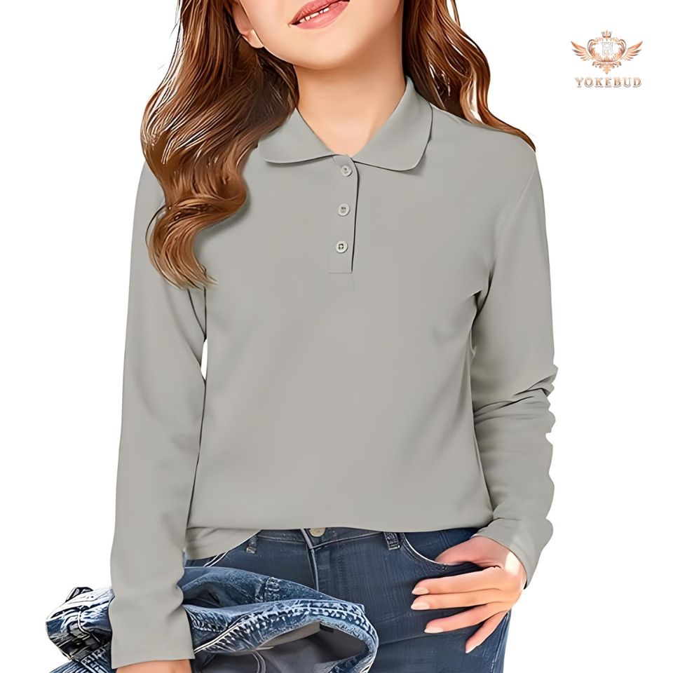 Best Quality Girls Long Sleeve Casual Polo Shirt 100% Cotton Breathable Quick Dry Summer School Wear OEM Wholesale BD