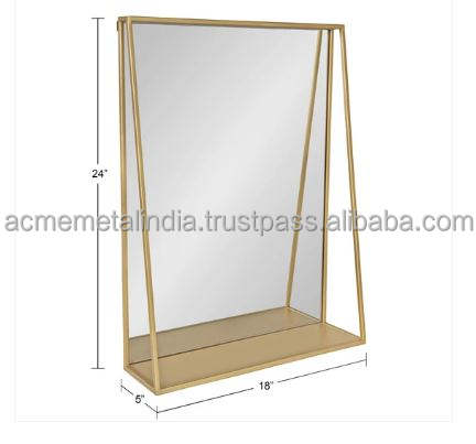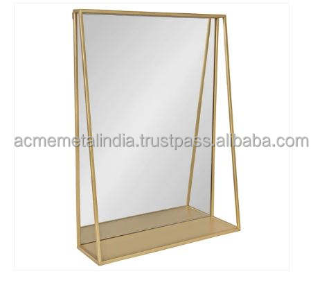 กระจกติดผนังทองเหลืองสีทองพร้อมที่ใส่วัสดุเหมาะสำหรับห้องน้ำและห้องนั่งเล่นของตกแต่งบ้าน