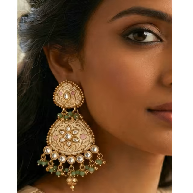 หินเคลือบสีทองที่มีคุณภาพดีที่สุดต่างหูแบบดั้งเดิมสำหรับผู้หญิงเด็กผู้หญิงสำหรับตอนเย็นดูสำหรับคอลเลกชันสวมใส่ในงานปาร์ตี้