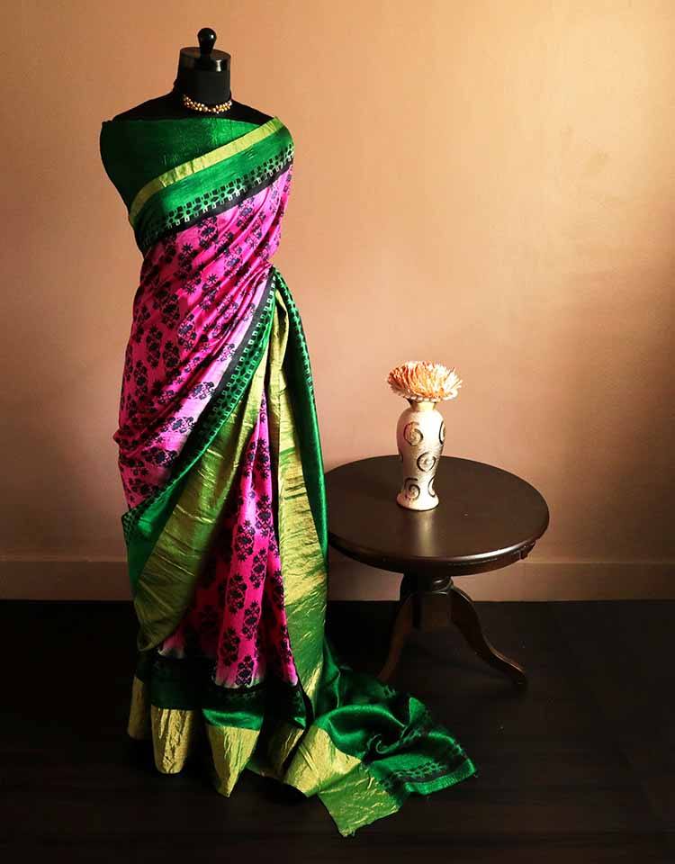 ผ้าส่าหรีไหมพิมพ์ลายแบบขอบอินเดียสำหรับสาวออฟฟิศชุดปาร์ตี้