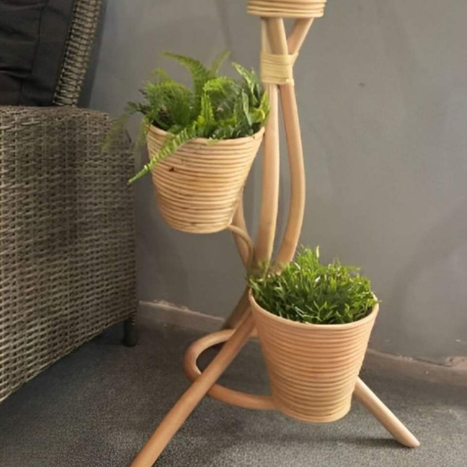 แจกันดอกไม้หวายทำมือแจกันตั้งพื้นทำด้วยมือจากอินโดนีเซียวัสดุไม้และไม้ไผ่