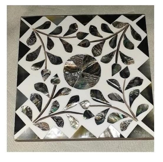 แผ่นรองแก้วแบบฝังทำจากเปลือกหอยงานหัตถกรรมแผ่นตกแต่งทำจากเรซินฝังมุก