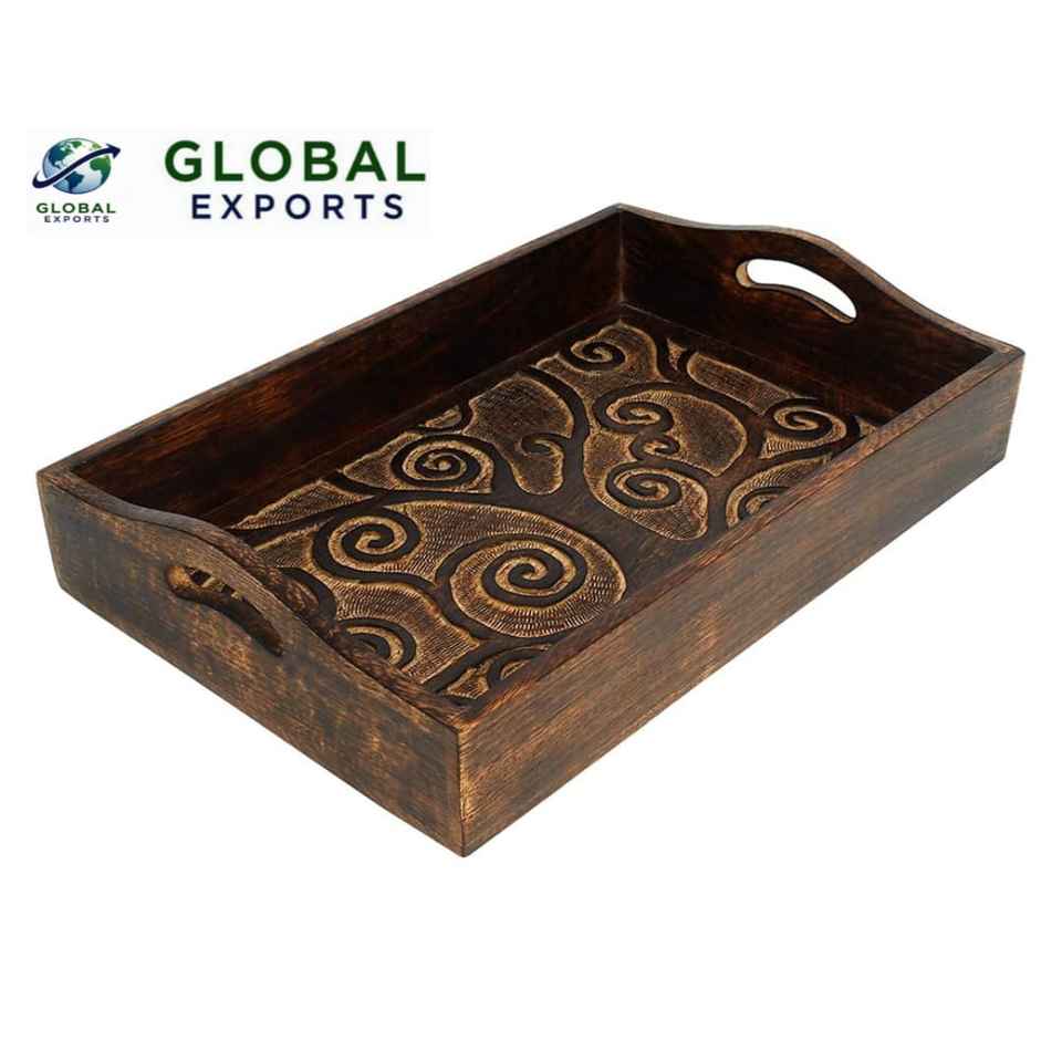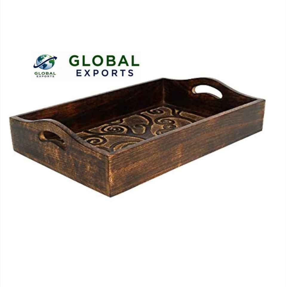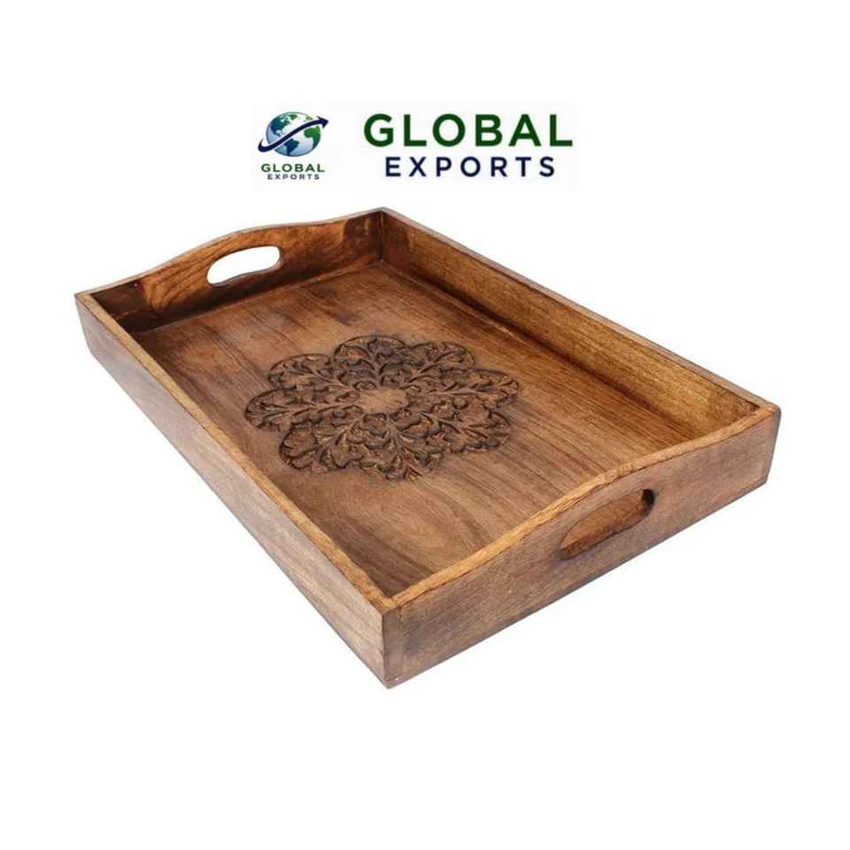 ถาดเสิร์ฟทำด้วยมือสำหรับตกแต่งบ้านถาดไม้ดีไซน์หรูหราสำหรับโรงแรมร้านอาหารใช้ในบ้านจากอินเดียส่งออกทั่วโลก