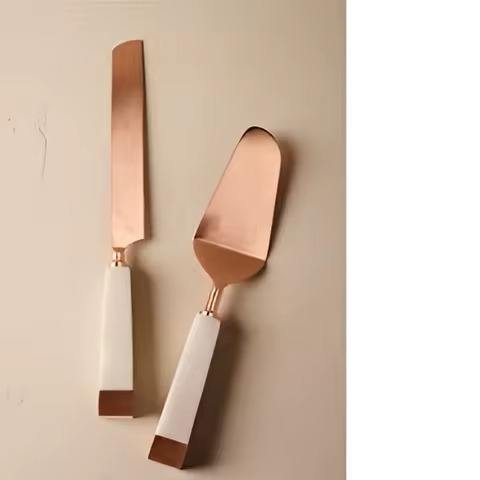 ชุดมีดและเซิร์ฟเวอร์เค้กโลหะทำมือพร้อมที่จับเคลือบสุดหรูเซิร์ฟเวอร์เค้กโลหะแบบสั่งทำ