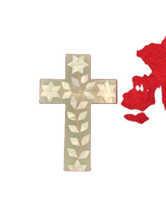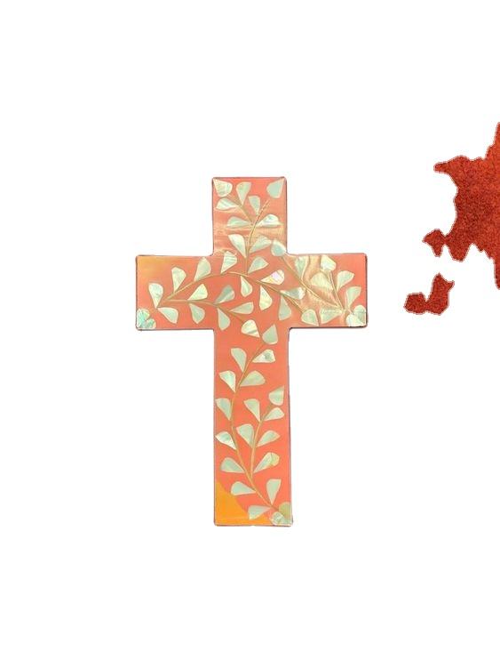 Best Quality Handmade Mother of Pearl Inlay Wooden Religious Cross Wall Hanging Bone Inlay Holy Cross Home Office Shop Church