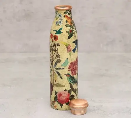 Best Quality Handmade Printed Copper Water Bottle with Lid for Gym Running and Motivational Personal Hydration