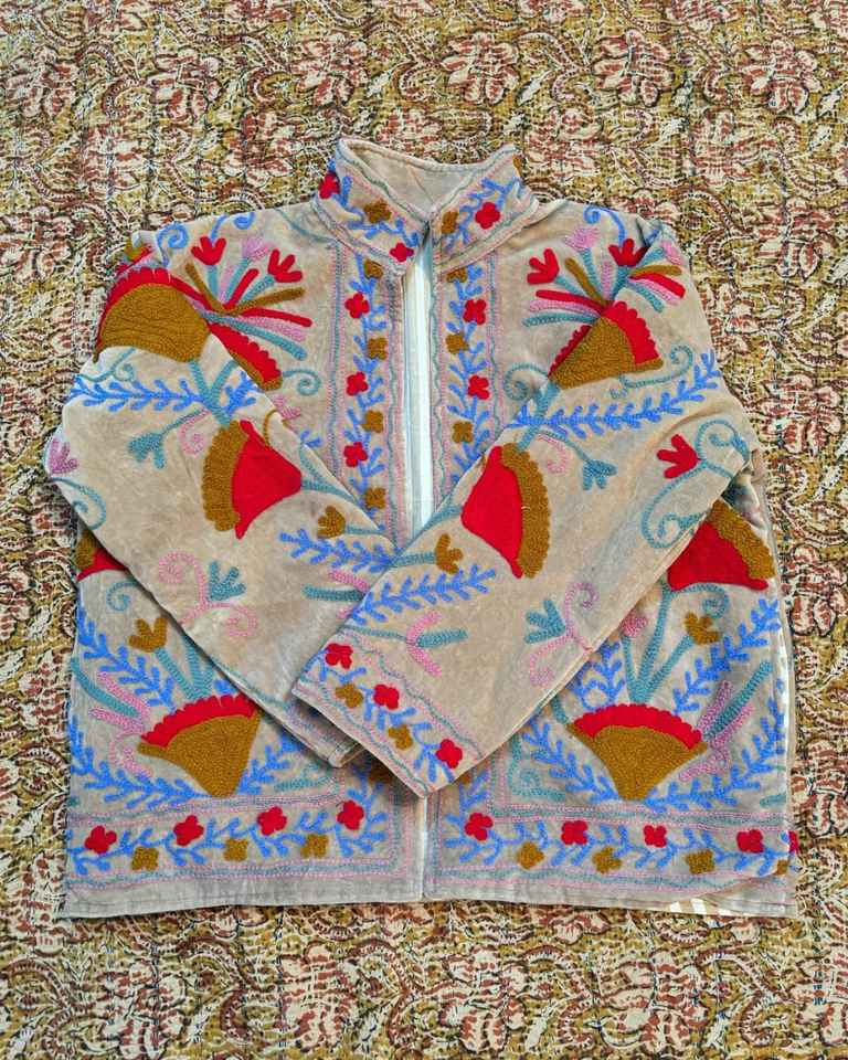 Suzani เสื้อแจ็กเก็ตผู้หญิงผ้ากำมะหยี่ปักลาย, เสื้อแจ็กเก็ตสั้น suzani ฟรีไซส์