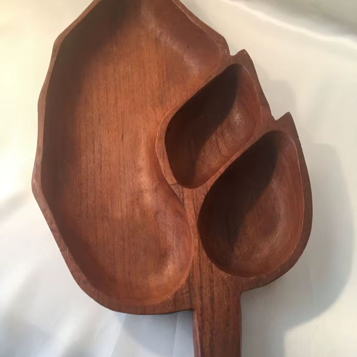 Best Quality Handmade Wooden Leaf Plate and Bowl Hotel Ware Restaurant Natural Wood Leaf Plate and Tray Wholesale Supply