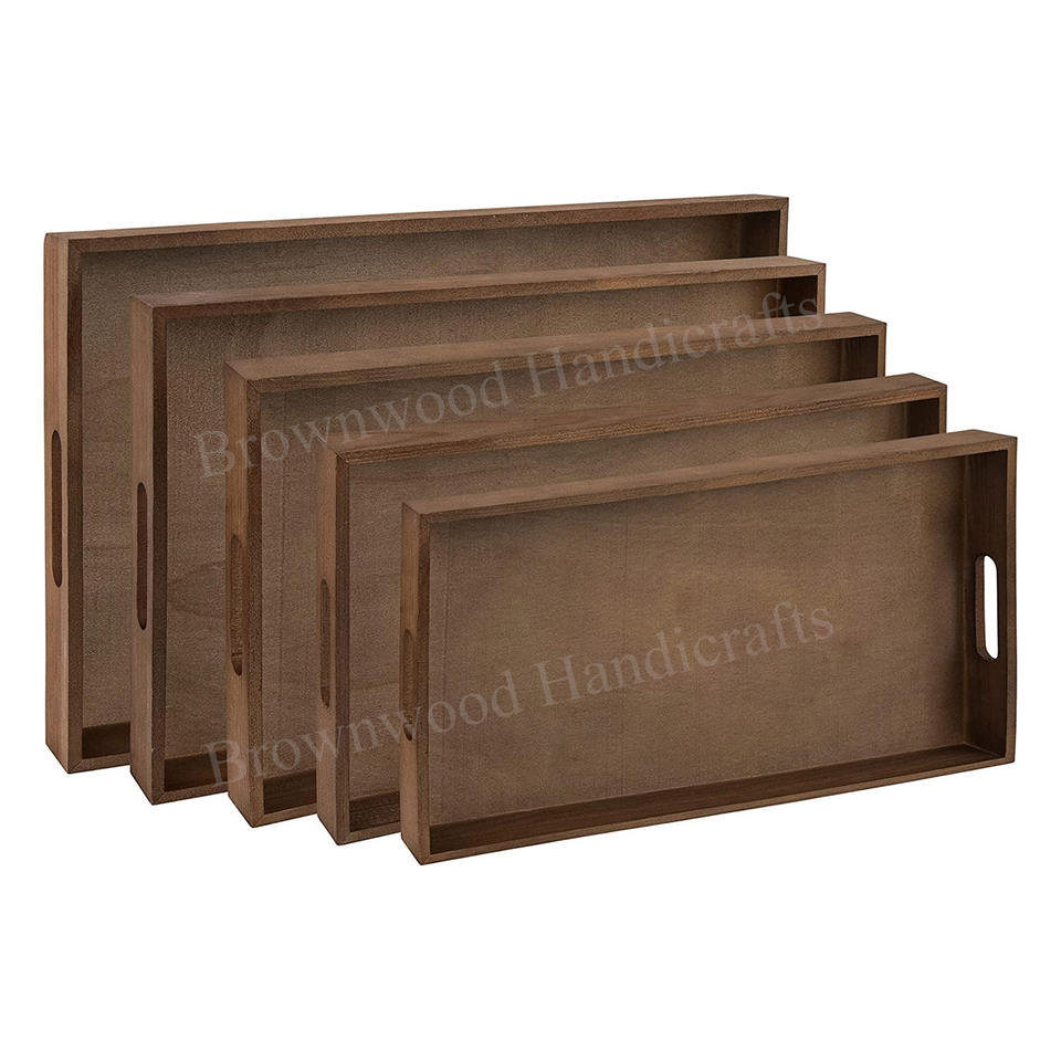 ชุดถาดไม้ทำมือคุณภาพดีที่สุด ทำจากไม้มะม่วงธรรมชาติ ปลอดภัยสำหรับอาหาร ชุดถาดเสิร์ฟ 5 ใบ เหมาะสำหรับโรงแรม ร้านอาหาร และใช้เป็นของขวัญ