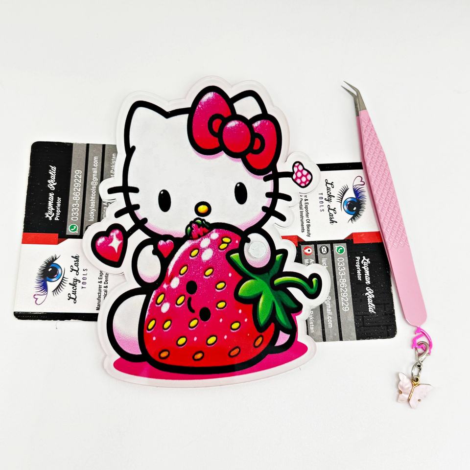 แผ่นติดขนตาปลอมทำจากอะคริลิคสีลายเฮลโลคิตตี้สตรอเบอรี่