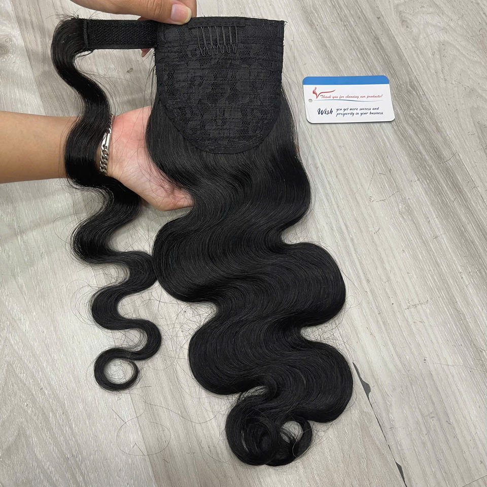 ผมต่อหางม้าแบบลอนคลื่นธรรมชาติ คุณภาพดีที่สุด ความหนาแน่นสูง สีดำธรรมชาติ ผมแท้เวียดนาม