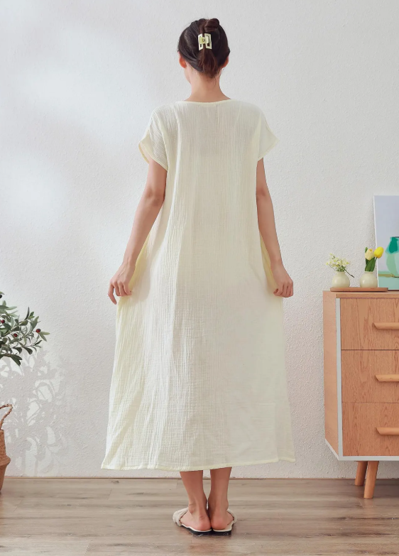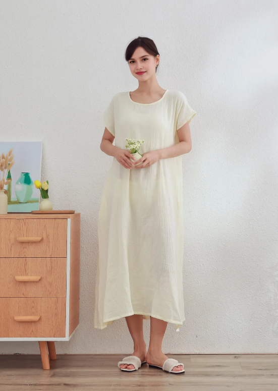 เดรสยาวคอโอแขนสั้นสำหรับผู้หญิงเดรสยาวมีระบายพิมพ์ลายย้อมสี2025แฟชั่นทันสมัย