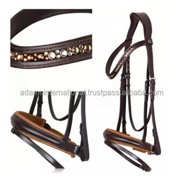 บังเหียนหนังแท้สำหรับขี่ม้า,ชุดบังเหียนบังเหียนแฟนซีสายบังเหียนหนังแท้สำหรับเล่นกีฬาขี่ม้า