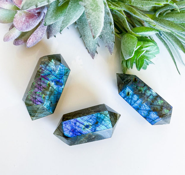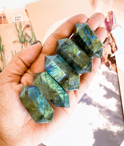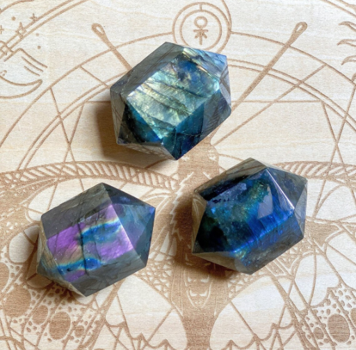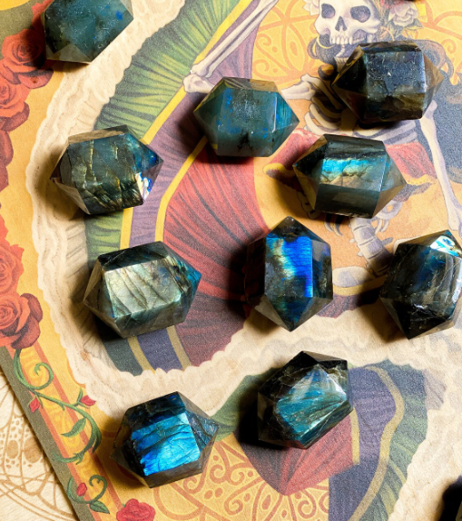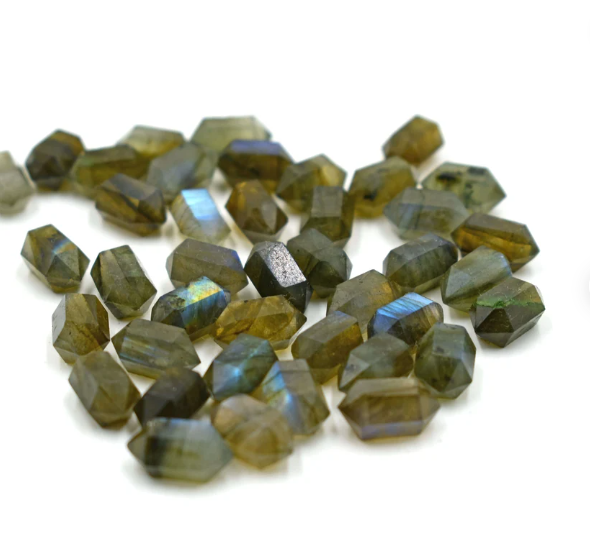 แร่ลาบราดอไรต์ธรรมชาติหลายจุด,จุดคริสตัลหกเหลี่ยมแบบถูกยกเลิกสำหรับทำเครื่องประดับ