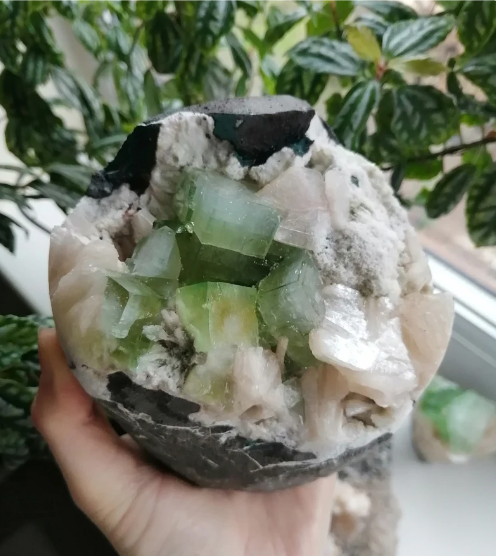 หินผลึกฟอสซิลธรรมชาติสีเขียวอ่อน